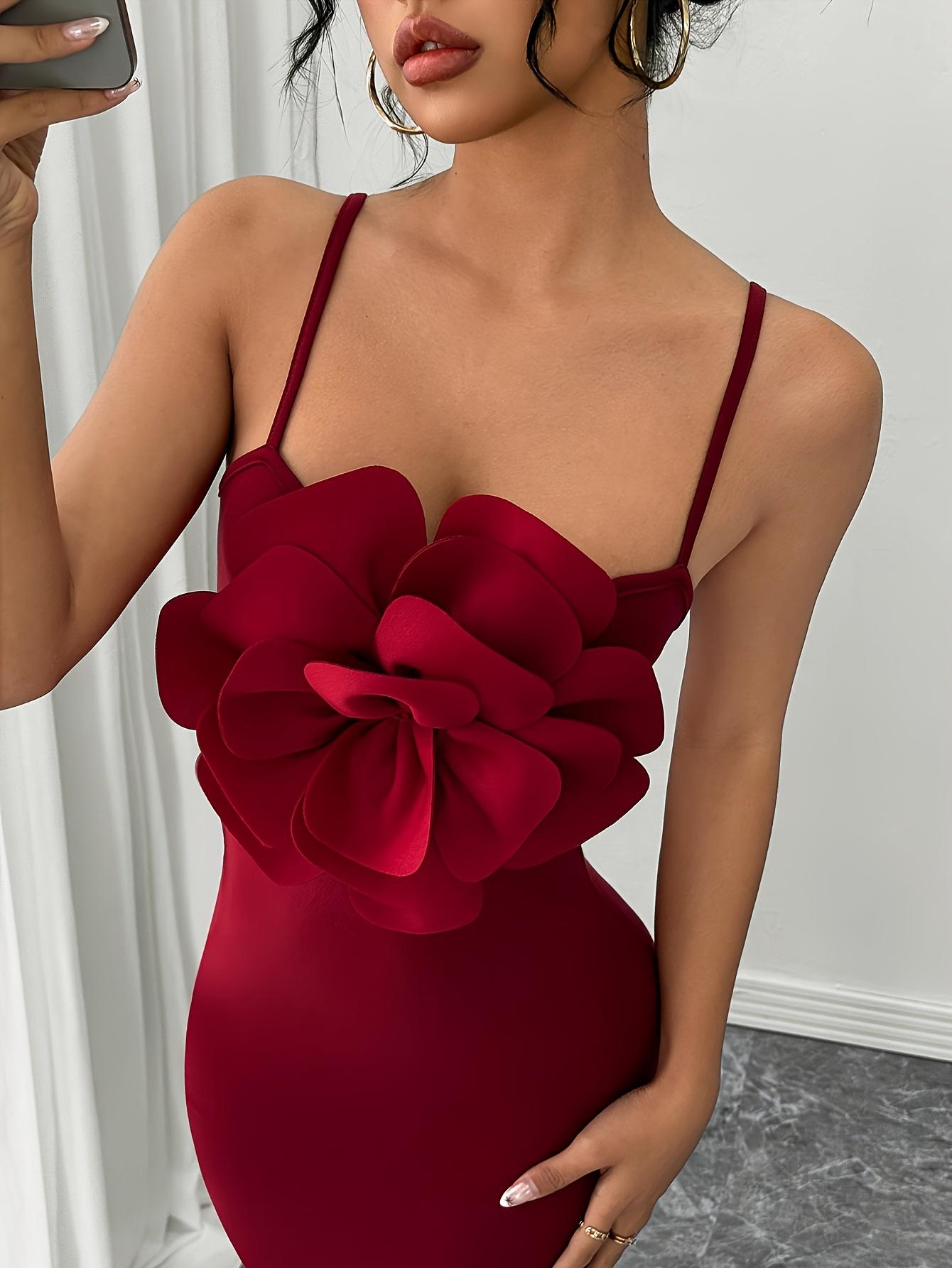 Robe moulante rouge à grand motif floral pour femmes, tendance et élégante