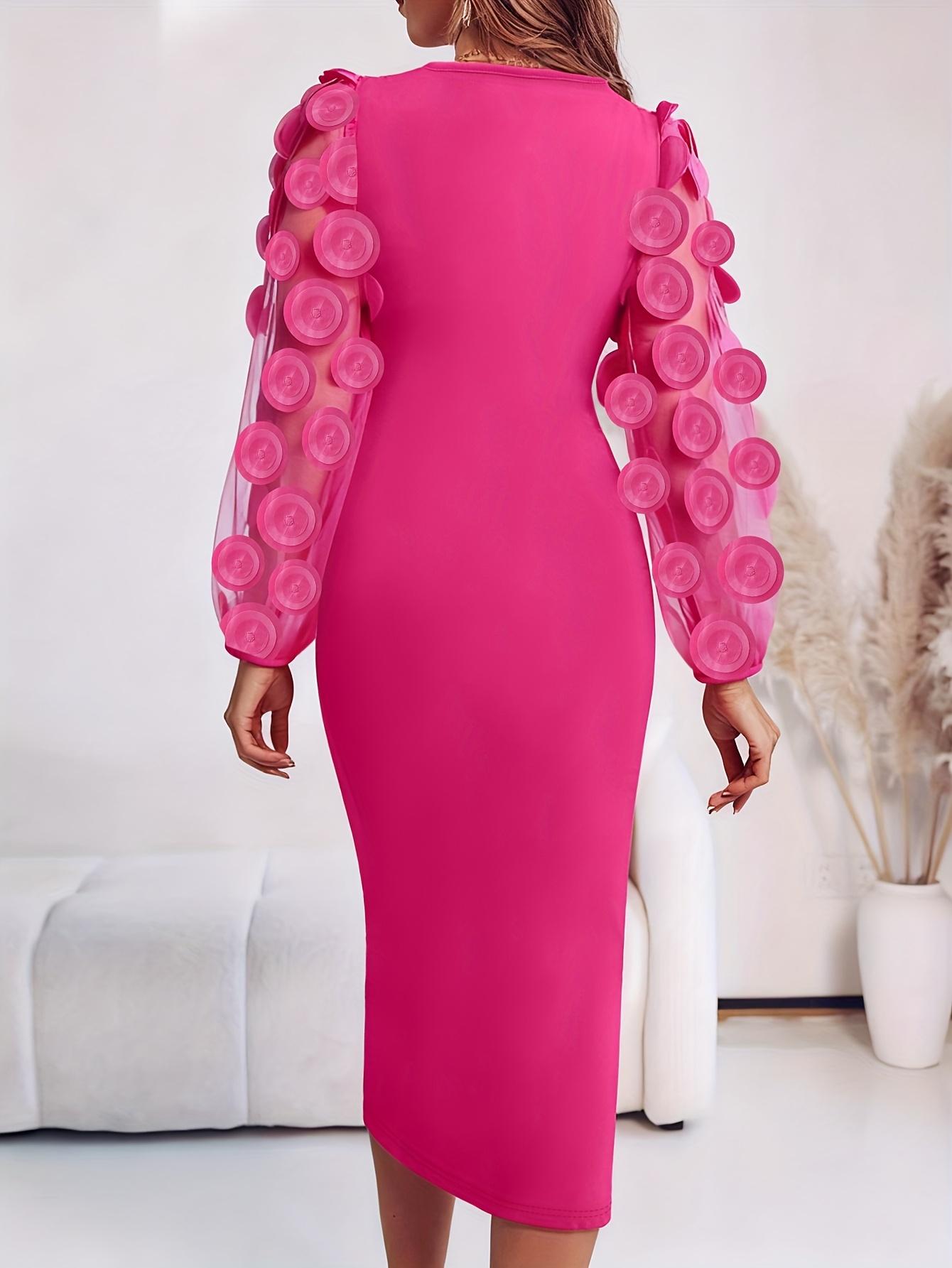 Robe sirène à ourlet fendu en A pour femme avec filet pétale et manches courtes - Coupe ajustée unie à col rond et boutonnage devant, lavable en machine, robe de fête pour mariage, invité, printemps, été, automne (superposition florale, non)