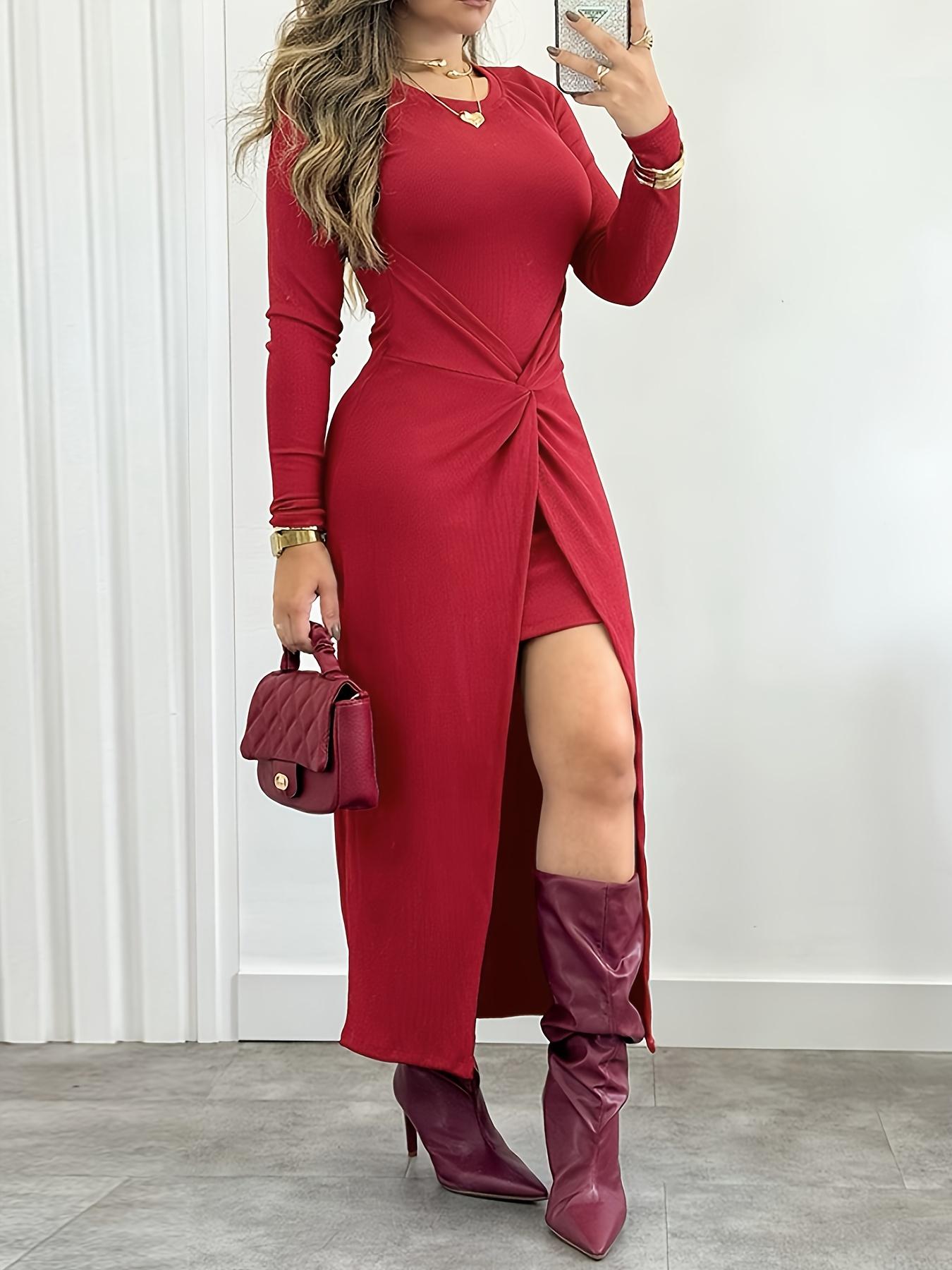 Robe moulante rouge à grand motif floral pour femmes, tendance et élégante